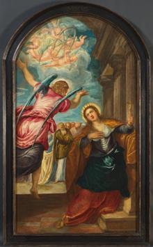Santa Catalina vuelve a la ciudad de los canales para formar parte de la exposición «Desde Tiziano a Rubens. Obras maestras de Amberes y de otras colecciones flamencas». Se presenta ya como la gran atracción de la muestra, hasta el punto de que si en un tiempo esta bellísima obra manierista –el estilo refinado del Renacimiento tardío- tenía el título de «La Anunciación del martirio de Santa Catalina de Alejandría», hoy es conocida como el Tintoretto de David Bowie.